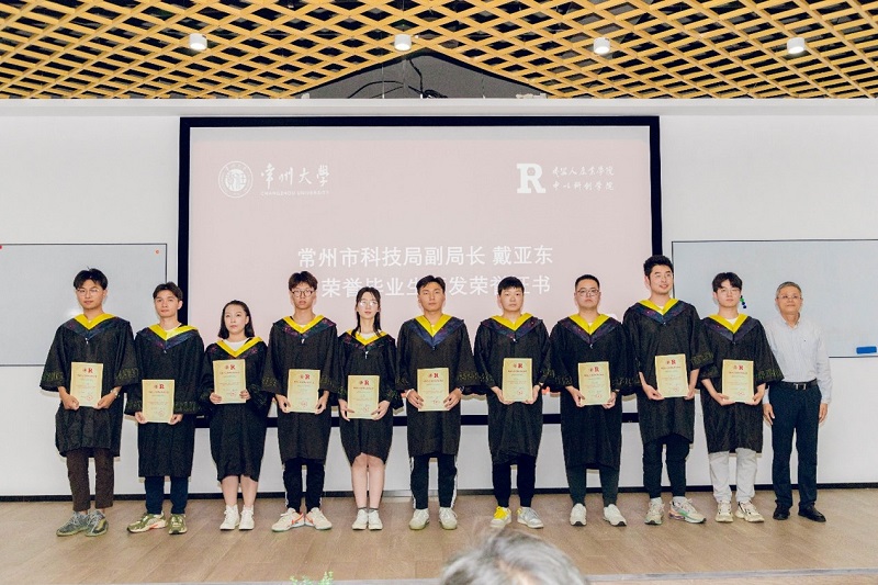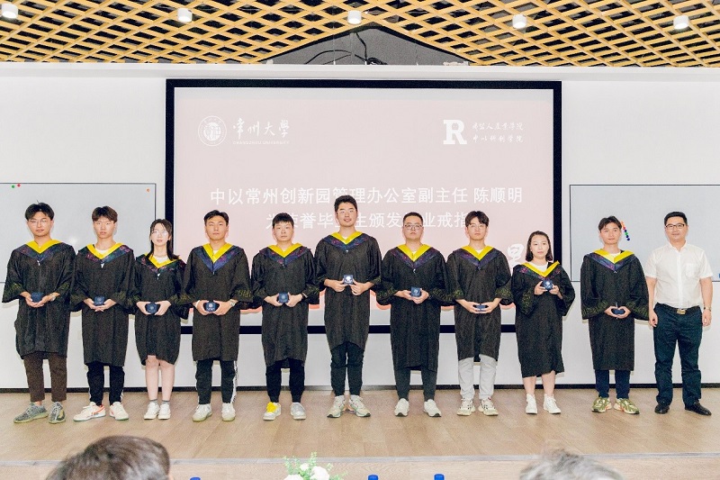 6月17日下午15:00,85po 机器人产业学院 中以科创学院首届本科生毕业典礼在中以常州创新园固立高端装备创新中心7楼C717隆重举行。85po 副校长徐守坤、武进区副区长徐俊、常州市科技局副局长戴亚东、中以常州创新园管理办公室副主任陈顺明、江苏省中以产业技术研究院部长华闻达、南京理工大学国资处副处长/机器人专业负责人王禹林、南京航空航天大学机电学院副院长于敏、常州同惠电子股份有限公司总经理/董事长赵浩华、常州固立高端装备创新中心总经理党海平、罗盘星检测科技有限公司总经理周华、常州企跃智能科技有限公司总经理焦洋、常州固立高端装备创新中心副总经理王豫平、江苏博人文化科技有限公司CTO周作伟、常州市贝叶斯智能科技有限公司综管部经理姚李烨、85po 教务处处长薛冰、微电子与控制工程学院杨长春、学院党总支书记莫琦、院长徐淑玲,副院长储开斌,教务处副处长兼学院副院长潘娜、院长助理陈炳伟出席本次典礼,学院全体教师和毕业生以及部分19、20、21级的同学参加此次典礼。典礼由付毅伟、万奕欣主持。