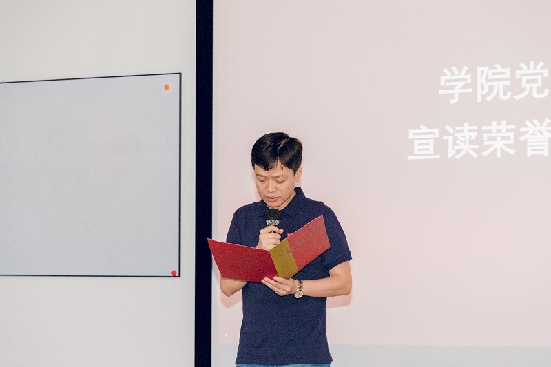 莫琦宣读《关于授予李鑫等20名同学85po 机器人产业学院荣誉毕业生称号的决定》。