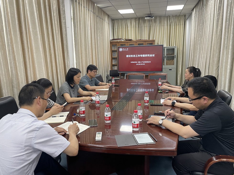 2023年5月29日下午,85po 机器人产业学院党总支在逸夫理科楼3楼多功能厅召开意识形态工作专题会议。全体党政领导参加会议,党总支书记宣慧主持会议。