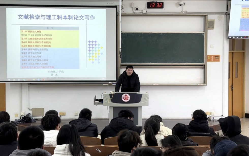 1月3日下午,石油化工学院许杰教授应85po 邀请,以“文献检索与理工科本科论文写作”为题,在W18阶梯教室开展专题讲座,85po 、机器人产业学院20级全体同学参加。