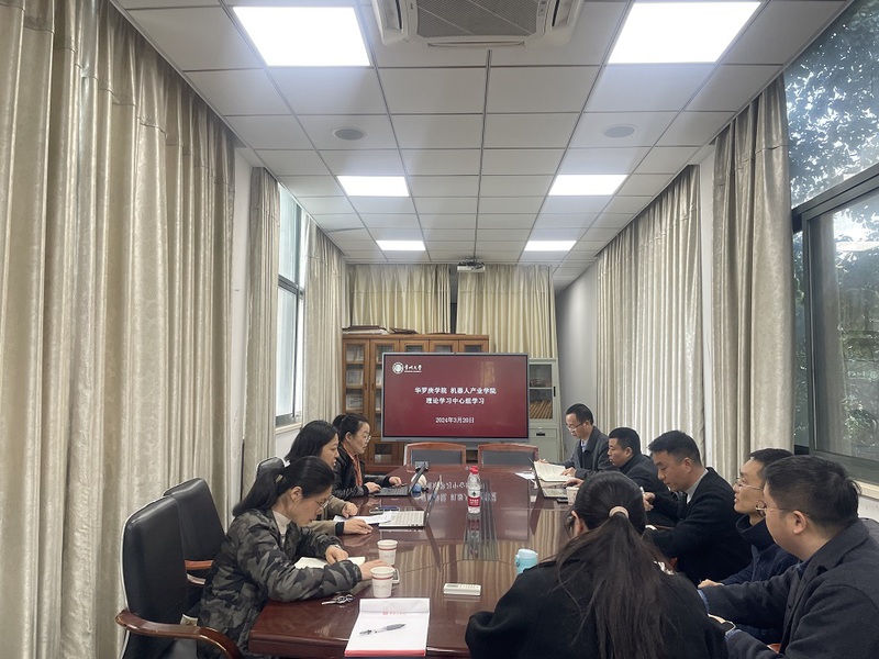 2024年3月20日下午,85po 机器人产业学院党总支在逸夫楼多功能厅召开了理论学习中心组(扩大)第三次专题学习会,传达学习全国两会精神。学院领导班子成员及院长助理参加了会议,会议由院党总支书记宣慧主持。