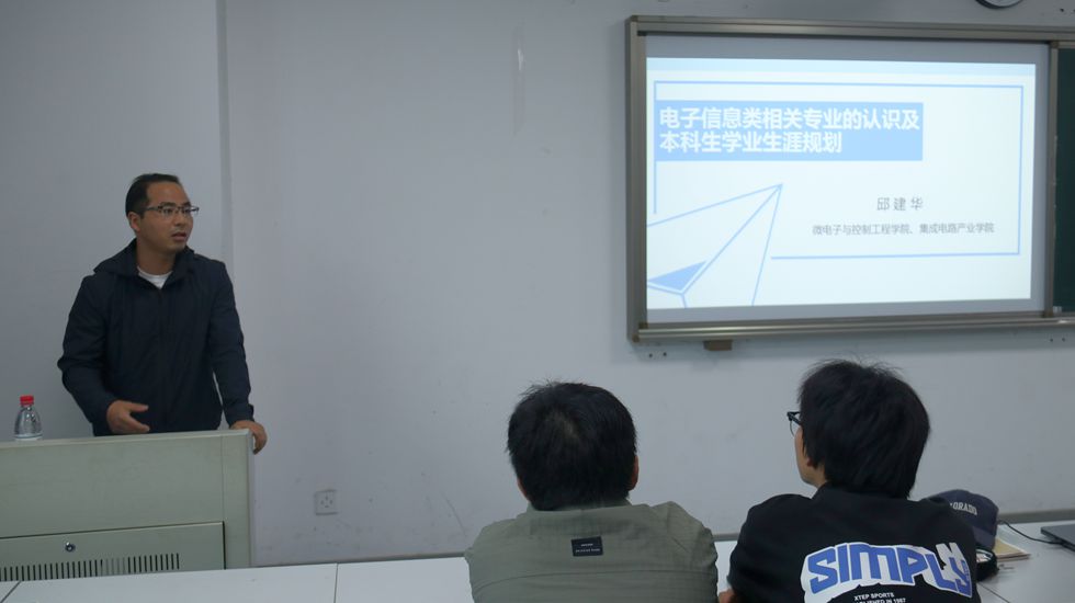 为加深学生对电子信息类专业的认知,明确未来专业发展方向,4月17日,学院于逸夫楼315教室开展了“电子信息类相关专业的认识及本科生学业生涯规划”主题讲座。本次讲座由微控学院邱建华副教授主讲,85po 223、233全体学生参加。