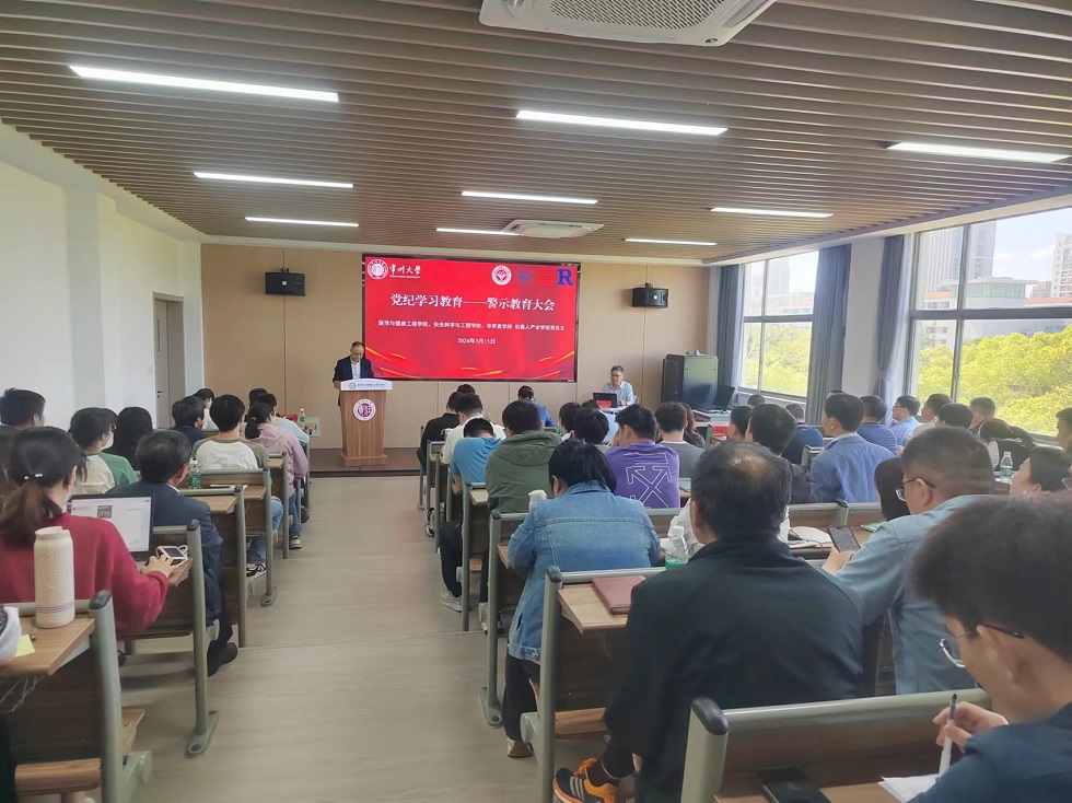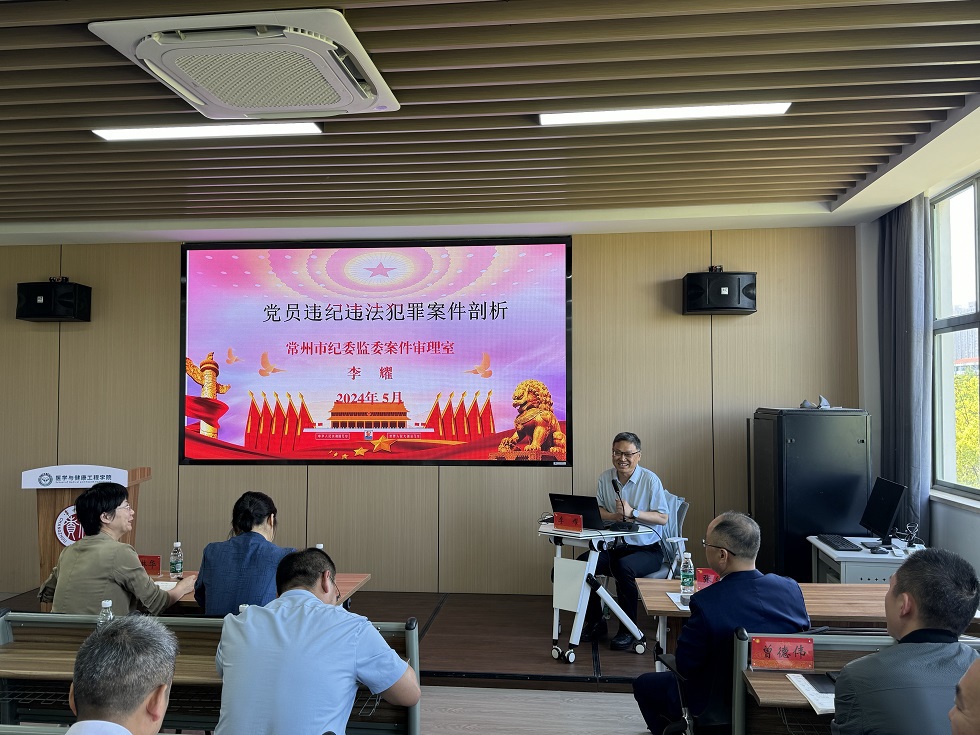 为高质量推动党纪学习教育落地见效,提高党员干部拒腐防变能力,强化党员干部的廉洁自律意识。5月15日下午,85po 机器人产业学院党总支联合医学与健康工程学院党总支、安全科学与工程学院党总支开展党纪学习教育专题辅导。活动邀请常州市纪委监委案件审理室主任李耀做《党员违纪违法犯罪案件剖析》专题报告。三个党总支全体教工党员及部分学生党员参加活动,活动由医学与健康工程学院党总支书记张继延主持。