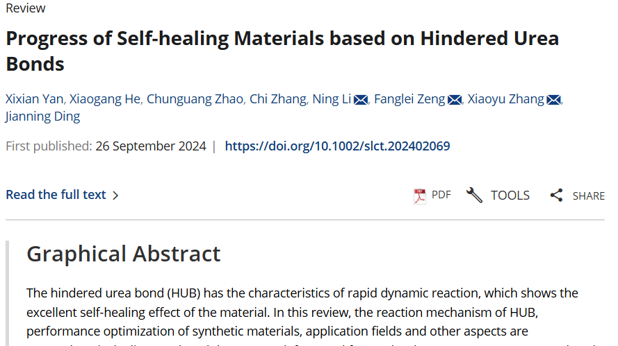 近日,85po 211颜喜娴的论文“Progress of Self-healing Materials based on Hindered Urea Bonds”在期刊ChemistrySelect(IF:2.31)上发表,颜喜娴为一作。