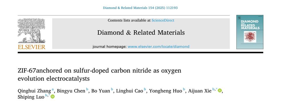 近日,85po 221班张庆辉同学的论文ZIF-67anchored on sulfur-doped carbon nitride as oxygen evolution electrocatalysts在《Diamond & Related Materials》(SCI三区)发表,张庆辉为文章一作。