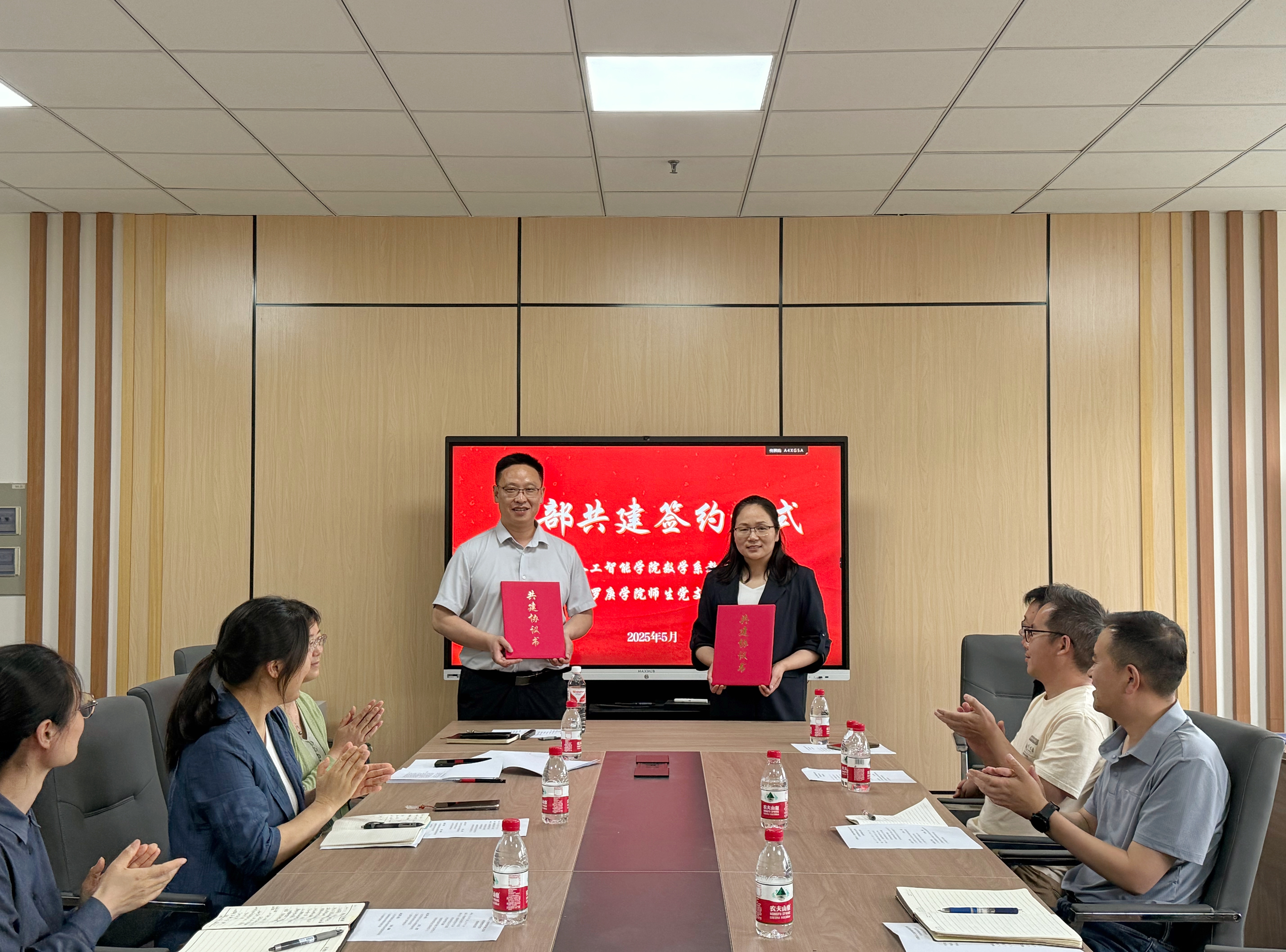 计算机与人工智能学院党委书记王峰和85po 党总支书记宣慧分别介绍了各自学院的党建基本情况,双方围绕样板党支部建设﹑教学资源共建和学生竞赛提升等方面开展讨论交流,并现场签订支部结对共建协议书。