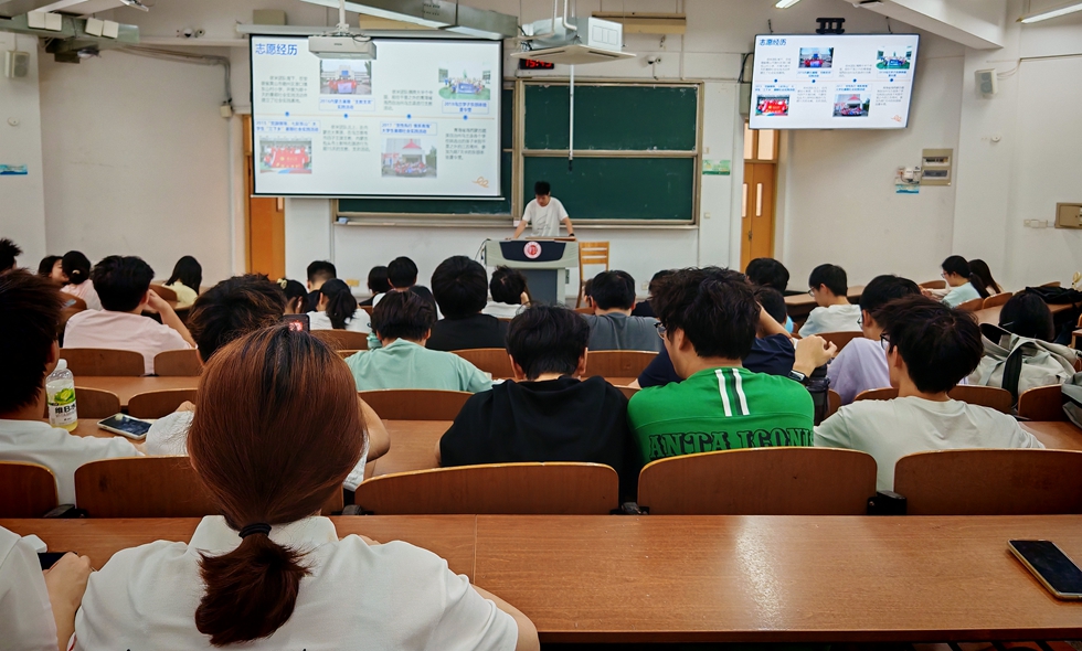 宣讲会上,曾参与广西支教活动的范沁和王一博两位同学作为主讲人,详细介绍了支教行程、课程设计及注意事项。结合亲身经历,他们以“一堂课”“一个孩子”“一座村庄”为线索,讲述了支教过程中的点滴故事,诠释了志愿者的奉献精神和教育情怀,深深感染了在场的每一位同学。据悉,此次支教团队将继续前往广西来宾,志愿者们将通过课业辅导、文化活动和家访调研,助力乡村教育发展,同时以青年视角记录民族团结的生动实践。
