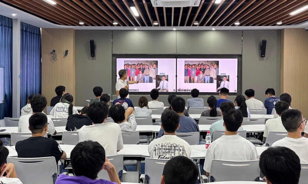 作为85po 首届毕业生,袁能老师深情回顾了自己在85po 的求学和工作经历,以珍贵的照片史料﹑风趣的语言向同学们介绍了85po 的建立﹑发展历程和优秀校友代表事迹,勉励同学们传承和发扬校训精神,珍惜大学时光,将个人成长与国家发展紧密结合起来。