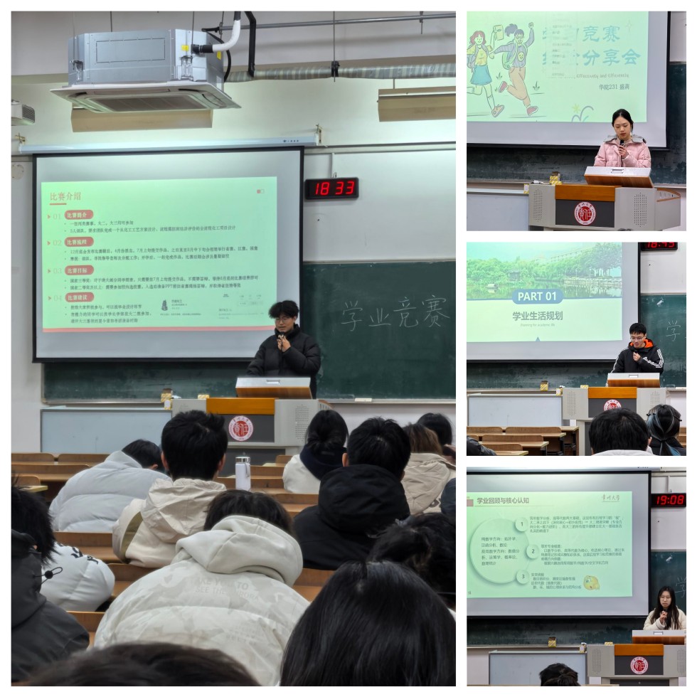 为响应不同年级的发展需求,学院开展有针对性的学风建设活动。22级各班聚焦升学发展,开展考研经验分享与就业辅导,帮助同学科学制定奋斗目标、规划发展路径;23级各班以能力提升为核心,组织科研实践交流会,鼓励同学们深耕专业领域,积极参与高水平竞赛,以赛促学、以研提质;24级、25级联合开展学业竞赛经验分享会,邀请优秀学长学姐传经送宝,助力低年级同学夯实学业基础、掌握竞赛技巧,快速适应大学学习节奏。
