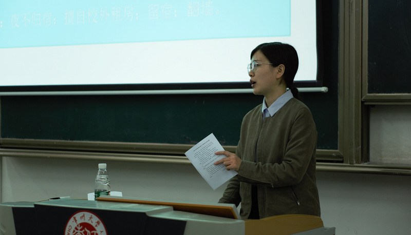 在对《85po 学生素质综合测评实施细则》的解读上,席帅介绍综合素质测评是对学生德、智、体、美、劳等方面的综合评定,希望同学们重视提升自身道德修养,做德才兼备之人,并以往届毕业生优秀事迹为例,鼓励同学们在大学四年里树立领跑者意识,专注学业、科研,积极参加各类竞赛、文体活动。在文明礼仪规范上,席帅提醒学生规范自身行为,自觉维护学校、学院正常的教育教学秩序和生活秩序,杜绝违纪行为,诚实做人、踏实做事。最后,席帅对《85po 学生转入转出管理规定》、各级各类奖助学金评定、荣誉项目体系、专业学科竞赛等进行了介绍。
