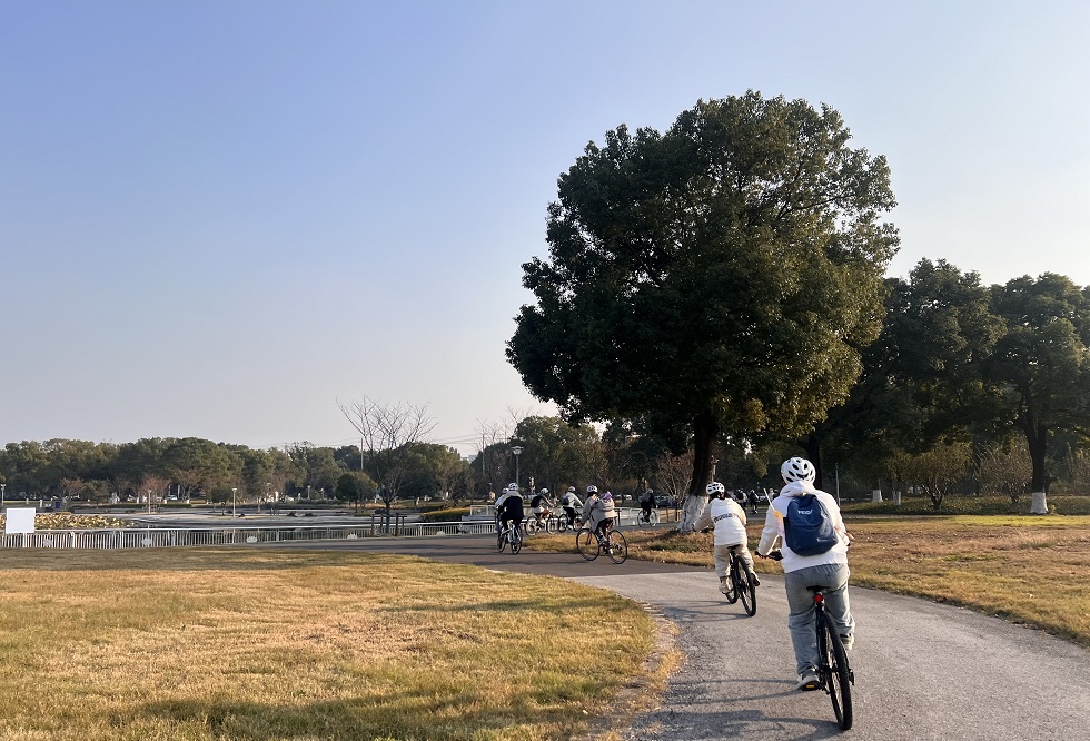 座谈交流结束后,全体参与者前往光伏产业公园,开展了富有活力的秋日骑行实践,亲身体验绿色出行与新能源科技的结合带来的魅力。